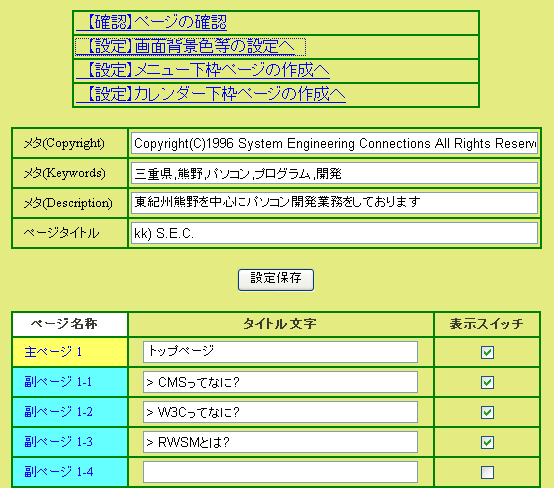 ( 【設定】メニュー下枠ページの作成も同じ画面 )