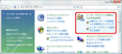 2.[ユーザー アカウントと家族のための安全設定]をクリックします。 |