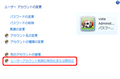 4.[ユーザー アカウント制御の有効化または無効化]をクリックします。 |